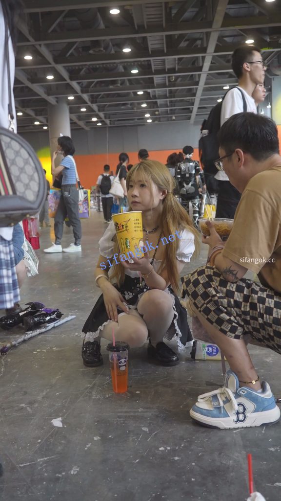 • 金发双马尾女仆陪男友逛街,穿着涞觅的吊带白丝,排队被CD白内。。